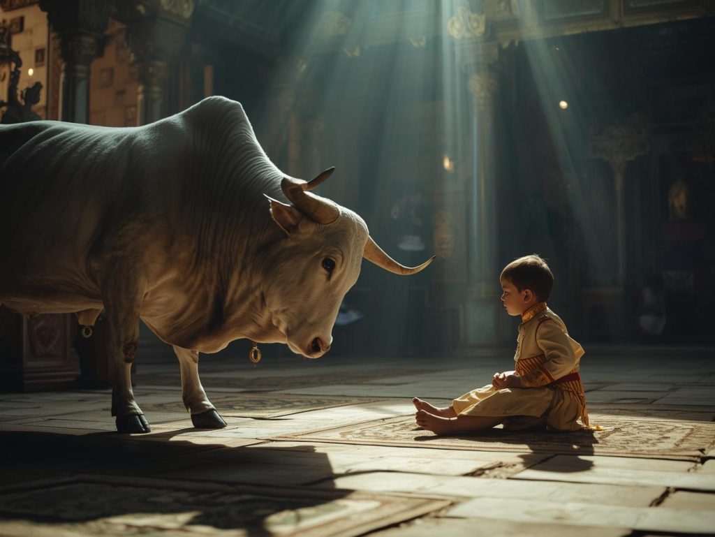 Legend tells that when Prince Vasupujya was born, a magnificent white bull appeared in the royal courtyard and bowed before the newborn. This divine bull remained as a guardian throughout his childhood, symbolizing the strength and purity that would characterize his spiritual journey. The bull's presence was seen as a cosmic sign that this child was destined to become a great spiritual teacher who would guide humanity with unwavering strength and compassion